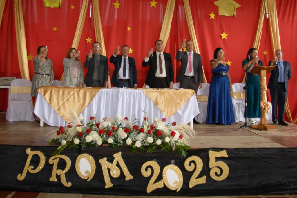 La jornada inició con dos momentos de oración: primero una reflexión dirigida por la Lic. Andrea Castrillón para los estudiantes del grado noveno, y posteriormente una oración de acción de gracias para los graduandos del grado once, guiada por el sacerdote Fernando Cárdenas. Después se entonaron los himnos, que llenaron de respeto y solemnidad el ambiente. Cabe resaltar que el grupo musical de la Universidad de Cundinamarca ofreció intermedios durante la ceremonia aportando un toque especial al evento. Posteriormente, se dieron las palabras del señor rector Luis Enrique Pachón Sánchez quien destacó el compromiso académico de los graduandos, y agradeció a los docentes y familias por su apoyo constante. El programa continuó con la entrega de diplomas, medallas y menciones de honor a los estudiantes que se destacaron por su excelencia, colaboración, esfuerzo personal y espíritu deportivo. Junto con estos reconocimientos, se otorgaron a los graduandos del grado once los certificados a los mejores proyectos exhibidos en la feria de la Ciencia y Tecnología y por alcanzar el mejor puntaje en las pruebas Icfes.
