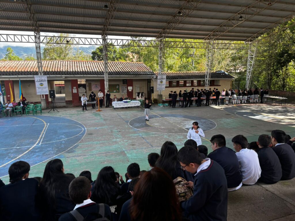 Uno de los momentos más destacados fue el acto cultural, en el que los estudiantes demostraron su talento artístico a través de presentaciones de poesía, danza y música. Las canciones, dirigidas por la Lic. Yenny Castiblanco Páez y presentadas por los estudiantes de los grados 701 y 602, incorporaron el uso de herramientas de inteligencia artificial, integrando tecnología de manera creativa la cual fue sorpresa para toda la comunidad educativa.